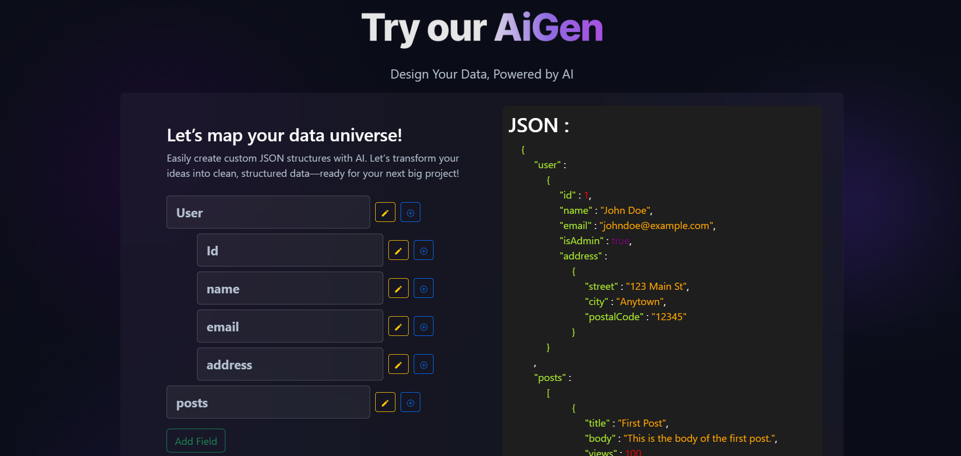 Une application React-Django utilisant l'API Gemini pour générer des données JSON/YAML dynamiques et personnaliséesVoir plus