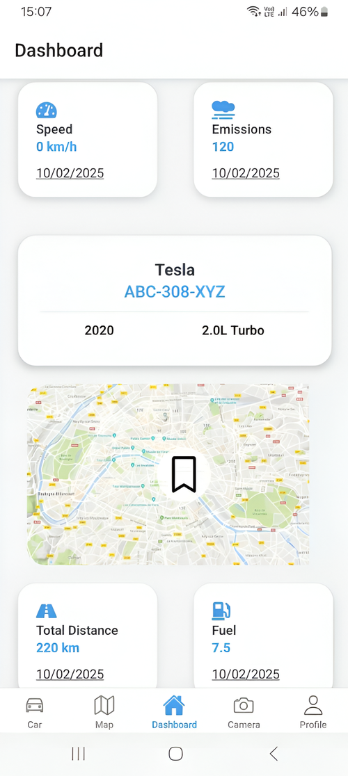 Une application mobile utilisant React Native et Flask pour le suivi en temps réel, l'analyse d'images avec Gemini et la surveillance du carburantVoir plus